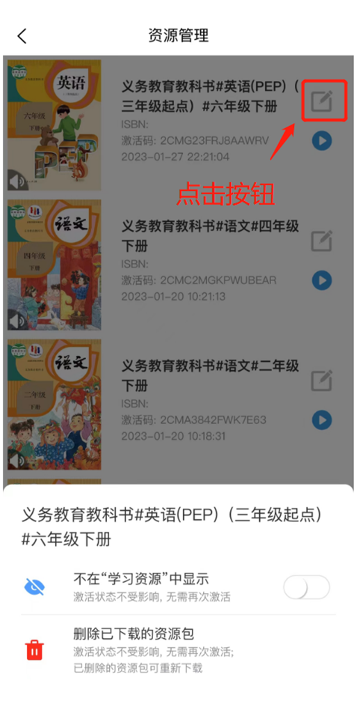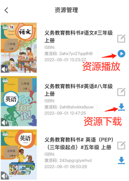 1.用户在“个人中心”中,可对已激活或已下载的资源进行管理。