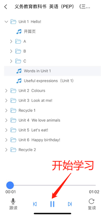 在“学习资源”中,点击已下载的教材资源,即可开始学习。